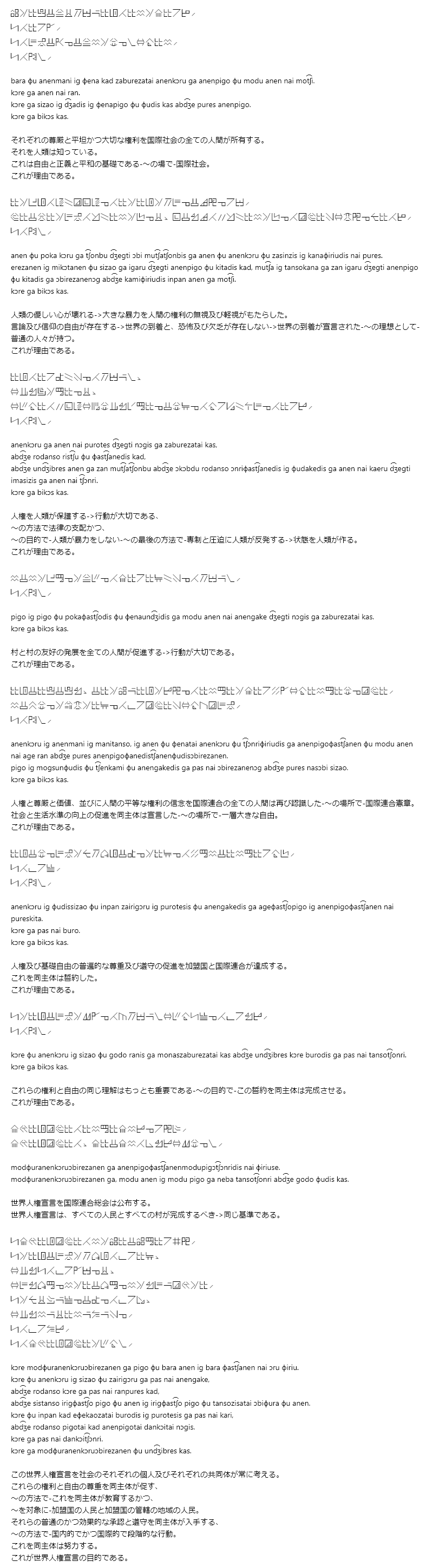 • 正書法で書かれた世界人権宣言前文の全訳