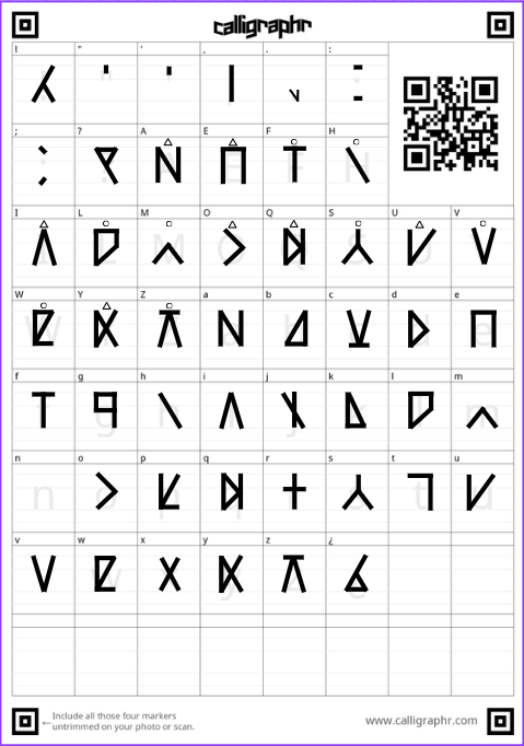 はい、前の記事で言った通り、この文字は元となった文字がありません。完全なオリジナル文字です。作った後に、「あっ。これ楔(くさび)形文字ににてるな」とは思ったけどオリジナルです。分けると、「母音7、子音15、分からんやつが2」です。説明しやすいよう、ここでは文字の上に書いてあるアルファベットで文字を言いますので、ご了承オネシャス。あと小文字アルファベットで書いた時は小文字のを、大文字で書いてあったら大文字のを見てください。なんか訊かれ(きかれ)そうなので先に回答しときます。世界観の設定はありません。