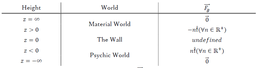 上記表より、質量を持つ物体は基準面であるThe Wallを通過できない。
