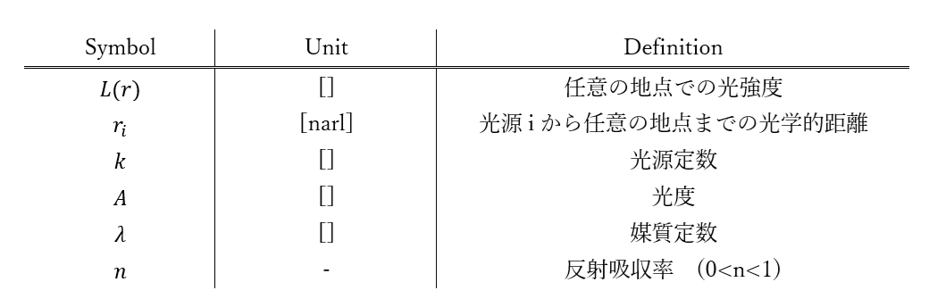 光は光子場と呼ばれるスカラー場の励起である。任意の点での光強度L(r)は以下のように表現される。