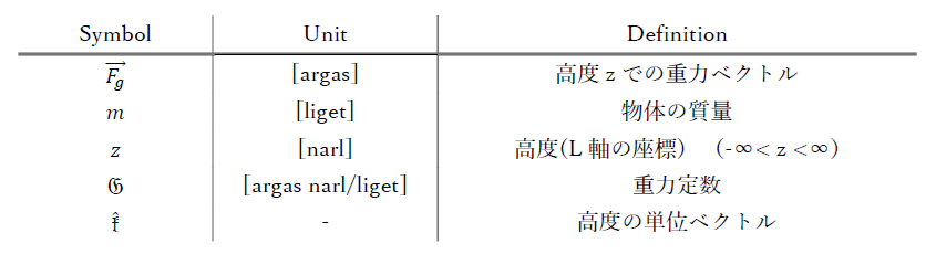 重力(gravity)とはAqualiartz世界上の全ての物体に影響を及ぼす場である。Aqualiartz世界では、以下の重力原理が適応される。