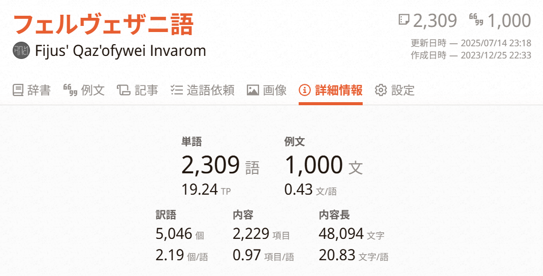 こんにちは。Fijus' Qaz'ofywei Invazomです。この世界がとても暑い気候だということを感じます。今日、私は報告したいことがあります。ZpDICで1000個の例文を翻訳しました!1000個の例文の中で、5個はてぇふまん。様によって作られた例文料理でした。私は作り続けるでしょう。造語雨をしたいです。私はフェルヴェザニに関わったすべての人にとても感謝します。今後もよろしくお願いします。さようなら。