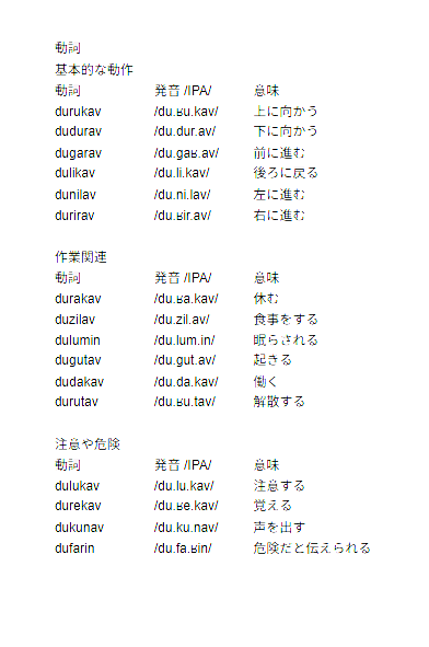 次、単語を変化させるすべてのやつ(【〈「語彙力」〉】)の一番左下の文字の例が間違ってました。ごめんなさい。正しくはzanimukavijis dimurukasでした。入っている要素は