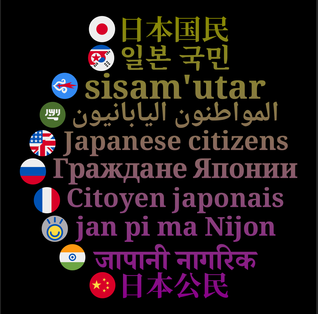 自分の言語(極光語)を作ってます 現在学習している言語はロシア語、アイヌ語、トキポナです。 まだ初心者ですが、よろしくお願いいたします。