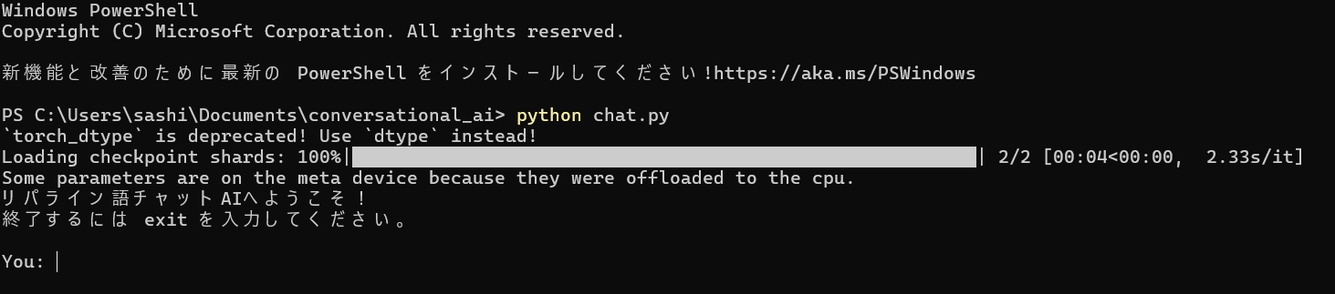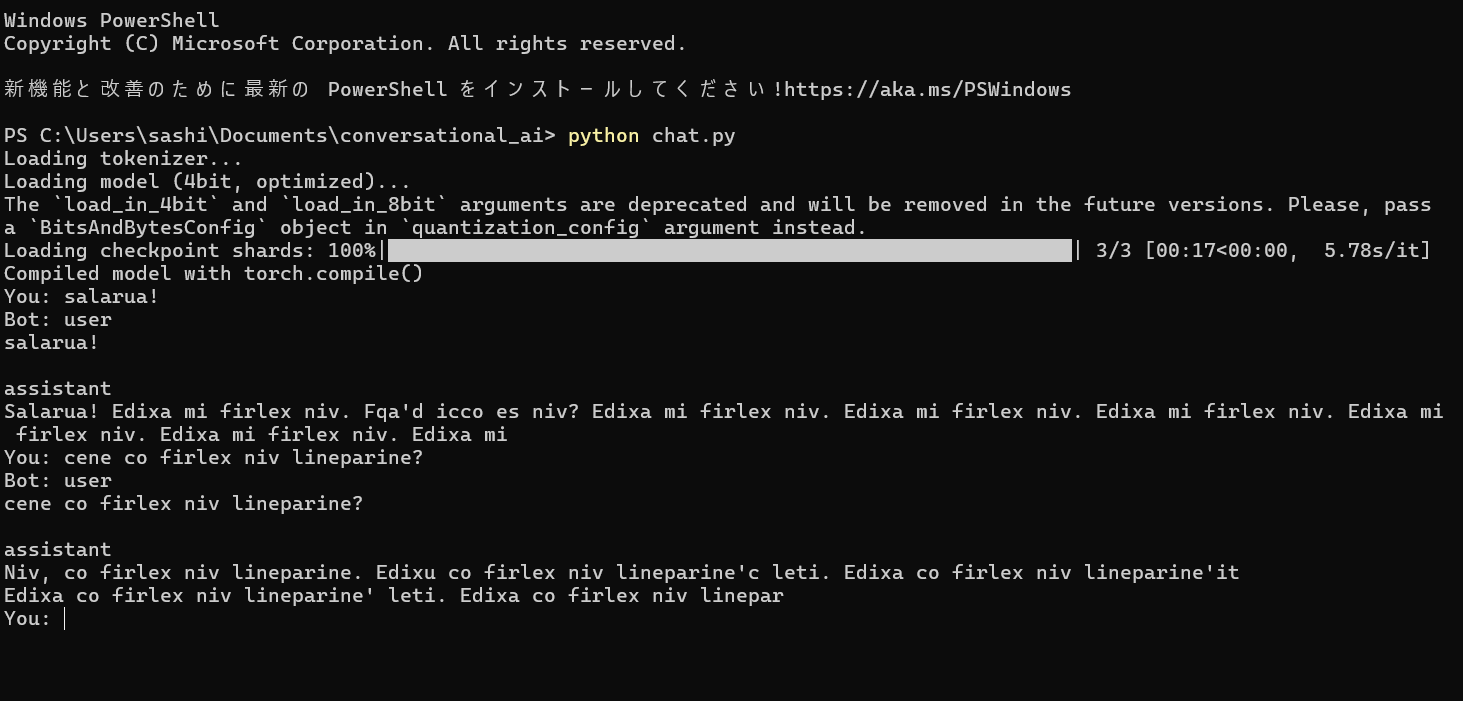 ■ chat_local.py — 学習済みモデルを読み込んで対話する簡単なチャットCLI