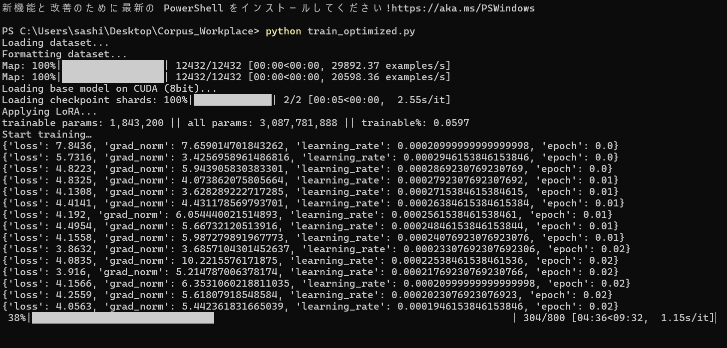 もう一回ChatGPTと協議して学習時間の短縮と品質維持に関して、更なる向上を目指すぞ。