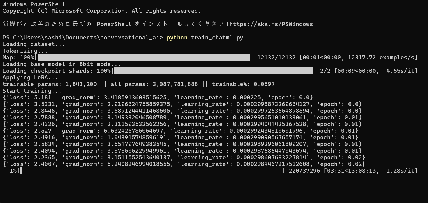 👉 今回作ったデータセットで「対話言語モデル」を学習するには、7B ではなく 3B クラスが最適です。