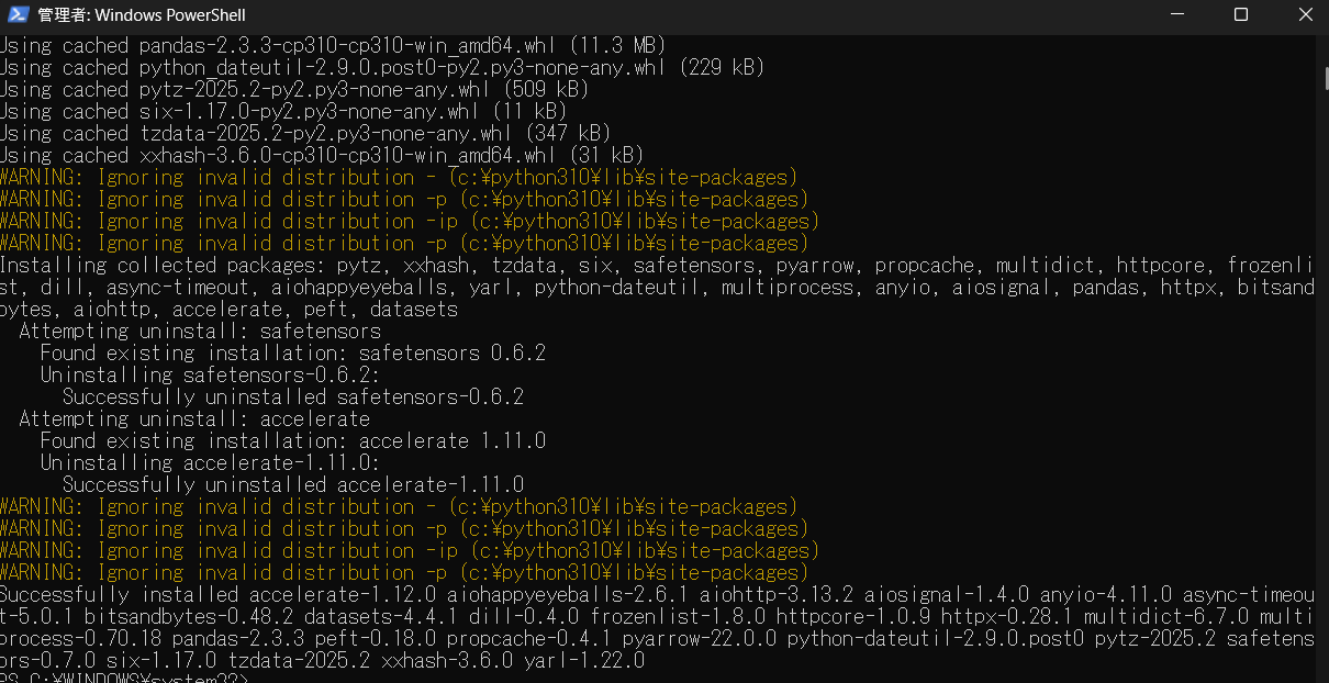 以前、同じようなことをランダム生成した文字列で学習させようとしてTransformerは導入済みだし、GPUはNVIDIA GeForce RTX 2060が積んである。Pythonも多分最新版が入ってる(確認したところ3.10.2なのでOK)。