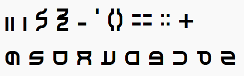 左上から、. , ! ? - ' [] "" :: = 0 1 2 3 4 5 6 7 8 9